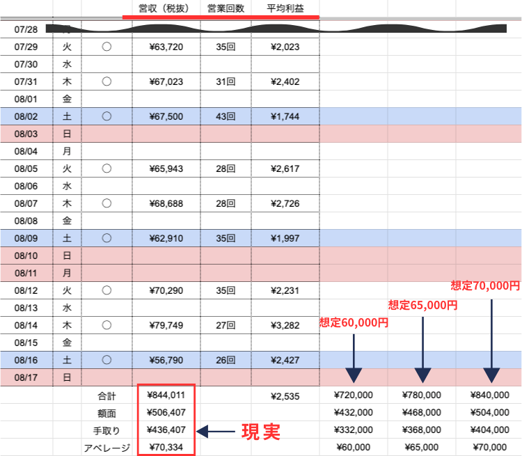 ・1日の売上:60,000円